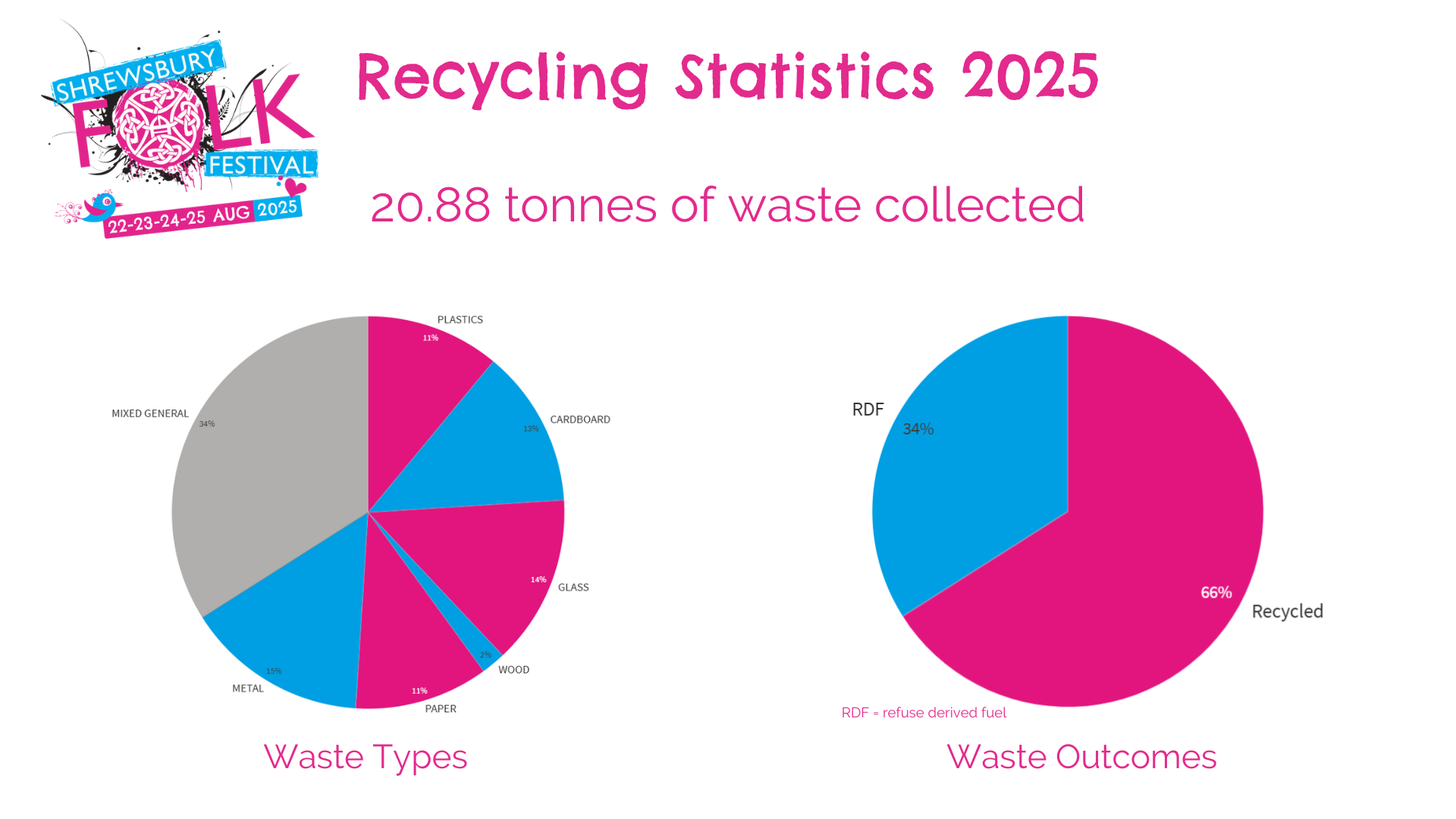In 2025, the festival generated 20.88 tonnes of waste – that included plastics, cardboard, glass, wood, paper, metal and mixed general waste.