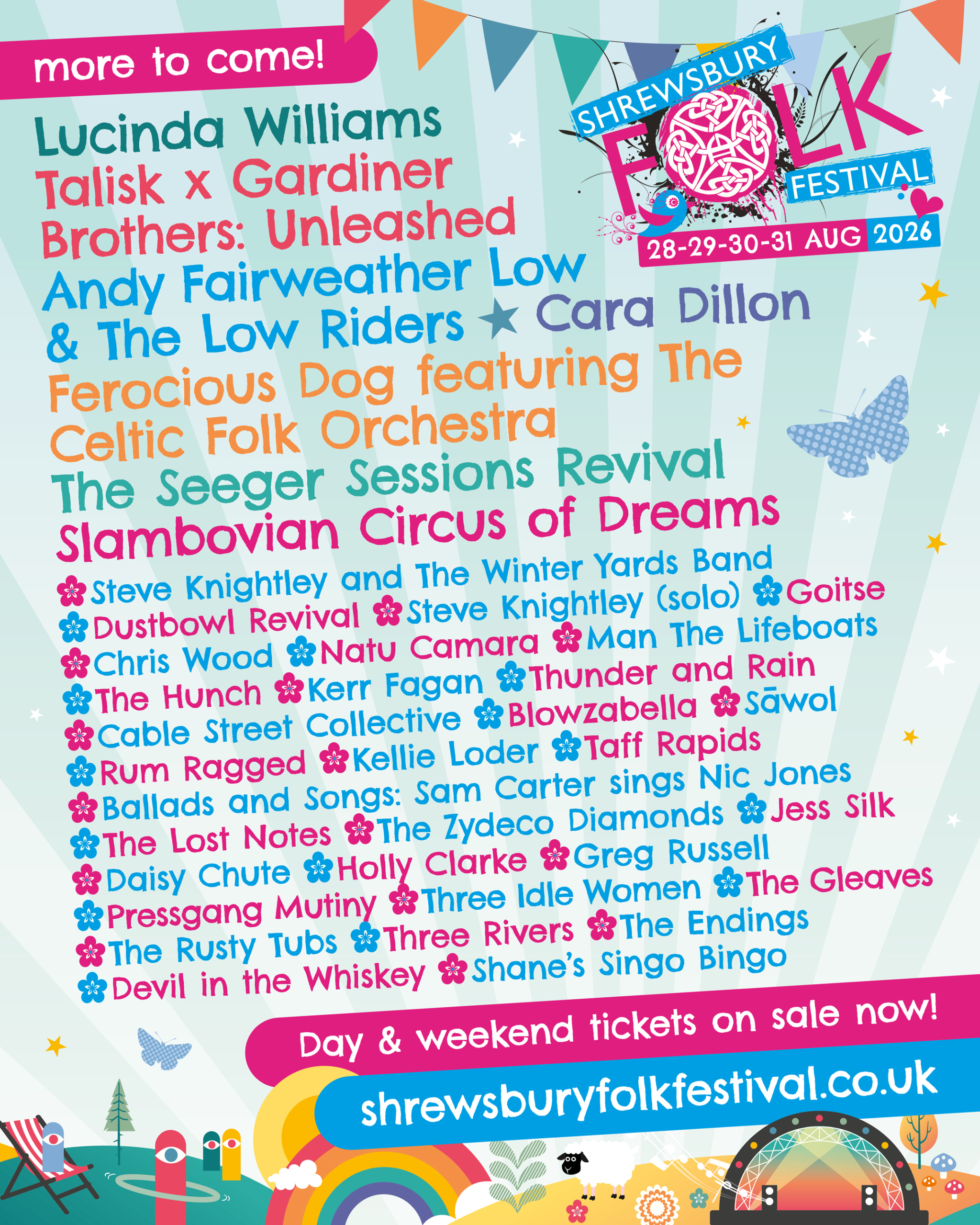 Day and weekend tickets are on sale at www.shrewsburyfolkfestival.co.uk, starting from £48.50 with a payment plan available so visitors can spread the cost over up to seven months.